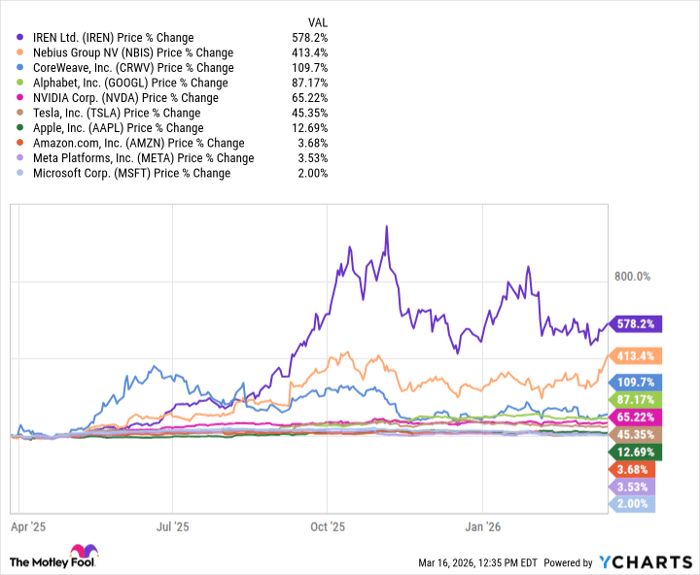 However, a new pocket of the AI realm is emerging — outshining its big tech counterparts. Enter neocloud stocks: CoreWeave, Iren, and Nebius Group (NASDAQ: NBIS), each of which has generated triple-digit gains over the last year.