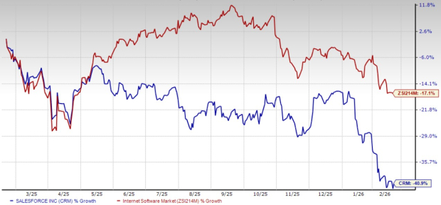 Shares of Salesforce have plunged 40.9% over the past year compared with the Zacks Computer – Software industry’s decline of 17.1%.