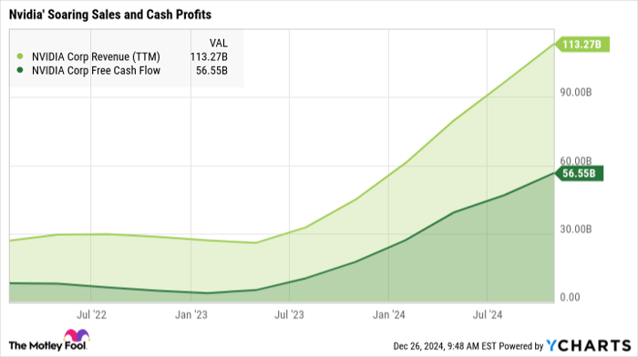 Nvidia’s annual sales stopped at $27.0 billion in fiscal year 2023 (which ended on Jan. 29, 2023 — equivalent to fiscal year 2022 for most companies). Less than two years later, the company generated more than twice that much in https://www.fool.com/terms/f/free-cash-flow/. Revenues over the trailing-12-month period have skyrocketed to $113.3 billion.
