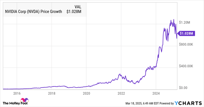 Semiconductor giant Nvidia (NASDAQ: NVDA) has made investors millionaires in the past. For instance, a $5,000 investment made in Nvidia a decade ago is now worth just over a million dollars. Of course, expecting Nvidia to replicate such remarkable gains over the next decade isn’t logical considering that it now has a market cap of just under $3 trillion, but it could still deliver robust gains and seems a worthy candidate for a million-dollar portfolio.