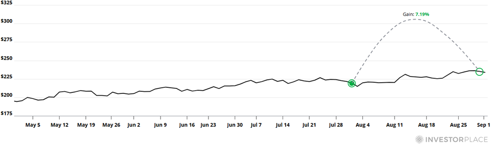 The Dow climbed 3.2% last month – its best August performance since 2020. Meanwhile, the Nasdaq and S&P posted respective returns of 1.6% and 1.9%. And rate-sensitive small-caps did the best as traders upped their bets on interest rate cuts from the Federal Reserve. The Russell 2000 jumped 7%.