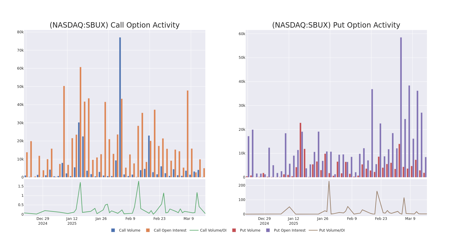 SBUX PUT TRADE BEARISH 03/21/25 $7.15 $6.95 $7.1 $105.00 $129.9K 4.7K 195