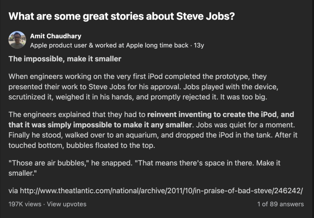 He quoted Jobs saying, “Those are air bubbles … That means there’s space in there. Make it smaller.”
