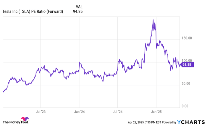 Investors can’t pick up Tesla shares at a reasonable price today, either. The stock trades at a forward price-to-earnings ratio (P/E) of 95 — and that figure doesn’t yet reflect how analysts are likely to update their longer-term forecasts based on Q1’s disappointing earnings. Forward P/E is the one metric that will matter above all else in determining Tesla’s stock direction over the next few years, and it is wildly high relative to the market’s average, which tends to sit in the 20 to 25 range.