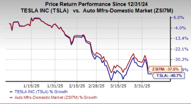 Shares of Tesla have lost around 41% year to date compared with the industry’s decline of 37.5%.
