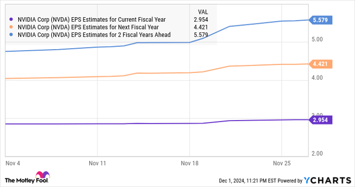 NVDA EPS Estimates for Current Fiscal Year data by YCharts.