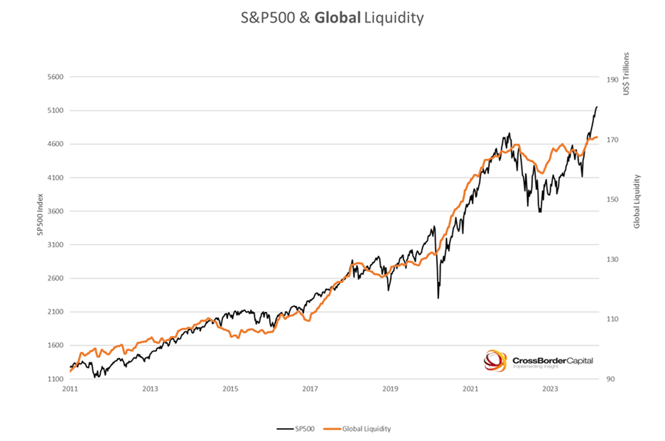 However, during bull markets, global liquidity sometimes decouples from the S&P.