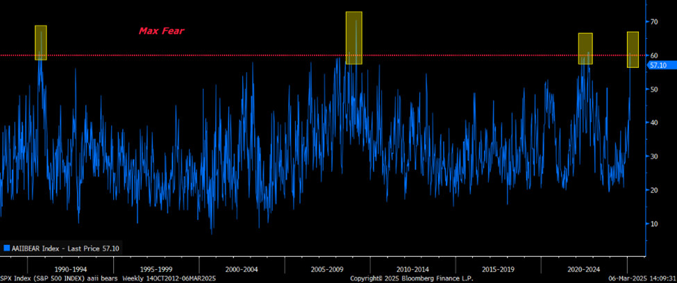 Others are certainly fearful right now. According to the weekly American Association of Individual Investors (AAII) survey, ~60% of individual investors are feeling bearish on the market right now.