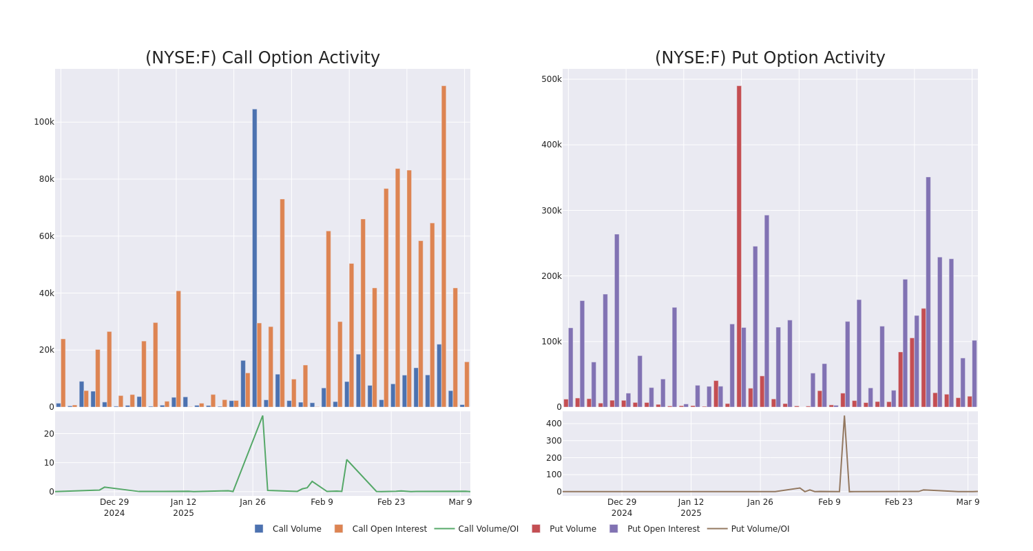 This data can help you track the liquidity and interest for Ford Motor’s options for a given strike price.