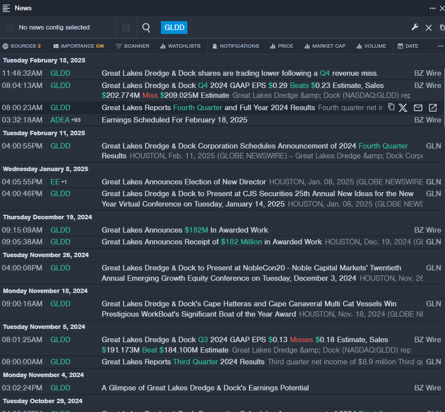 - GLDD Price Action: Shares of Great Lakes Dredge & Dock fell 3.1% to close at $8.42 on Friday.