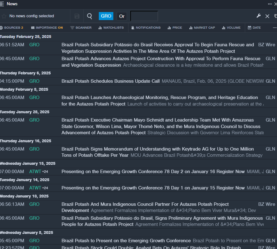 • Benzinga Pro’s real-time newsfeed alerted to latest GRO news.