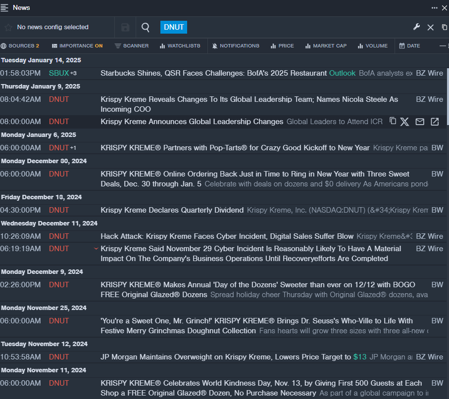 - Benzinga Pro’s real-time newsfeed alerted to latest DNUT news.