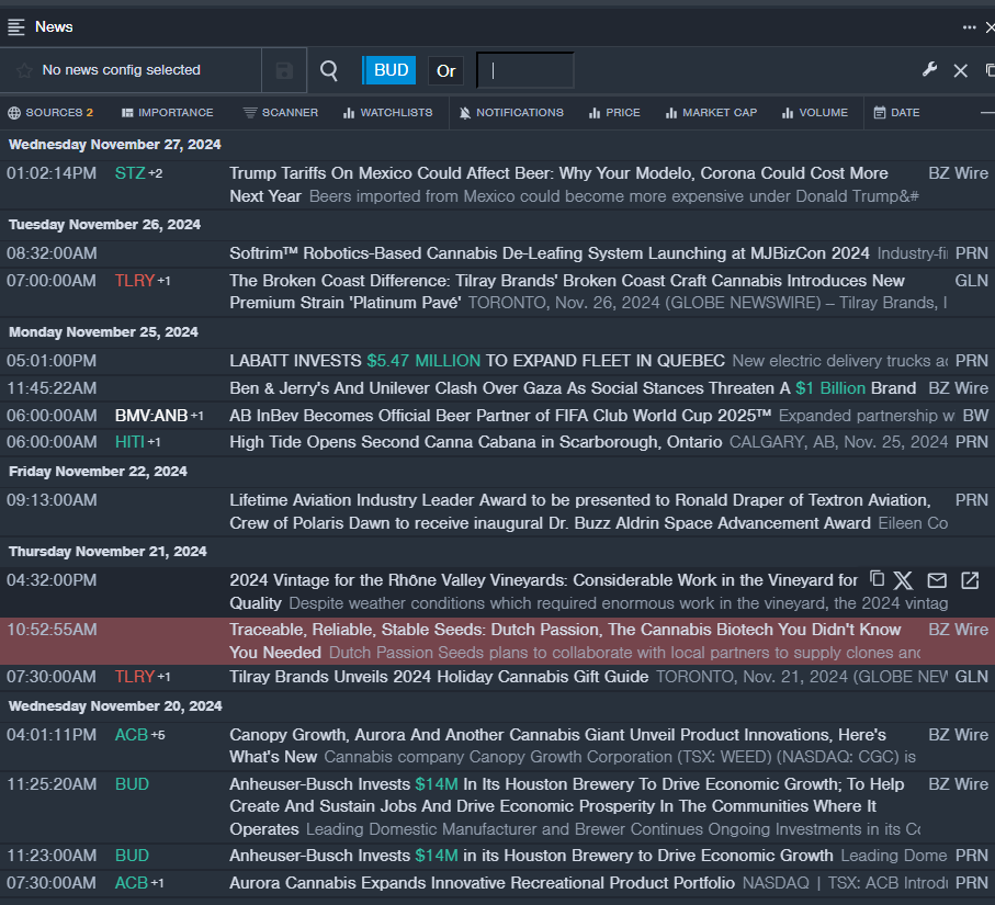 • Benzinga Pro’s real-time newsfeed alerted to latest BUD news.