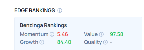 • Edge Stock Ratings: 5.46 Momentum score with Value at 97.58.