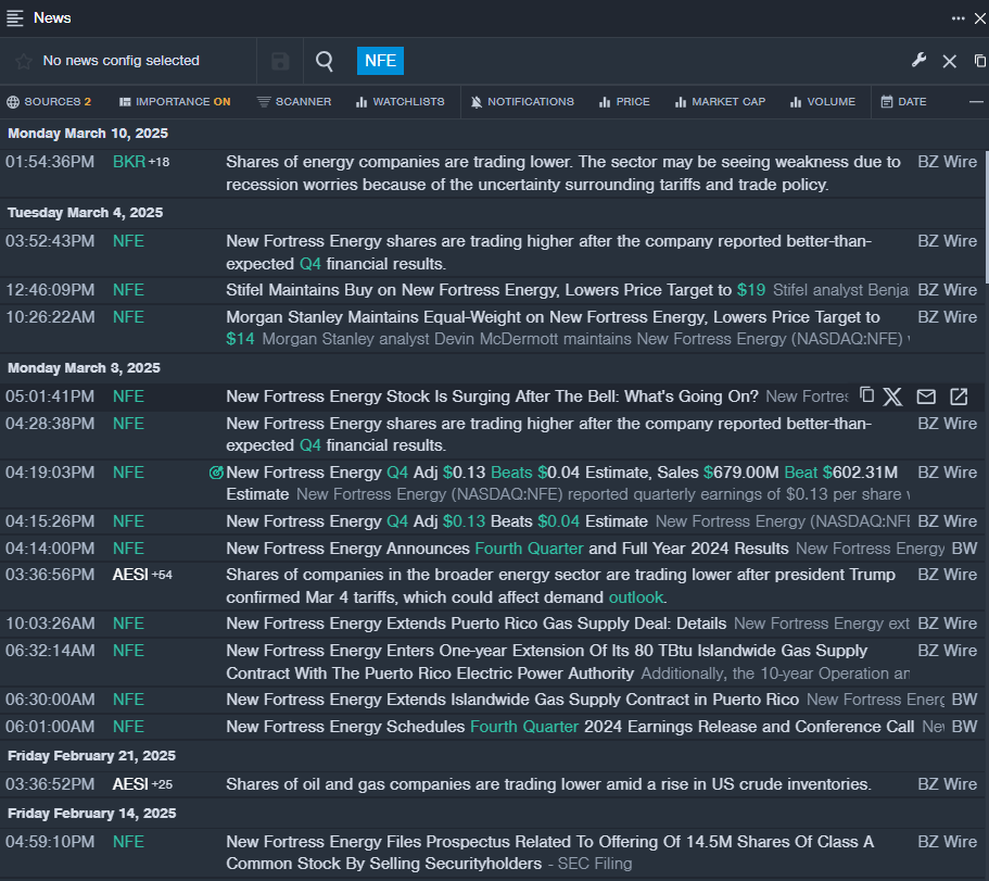 • Benzinga Pro’s real-time newsfeed alerted to latest NFE news.