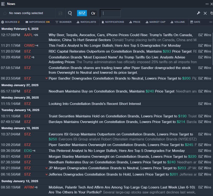 • Benzinga Pro’s real-time newsfeed alerted to latest STZ news.