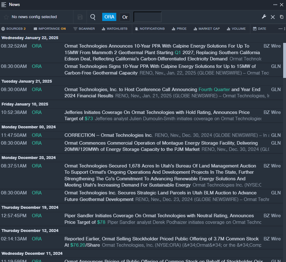 - ORA Price Action: Shares of Ormat Technologies fell 3.3% to close at $62.51 on Tuesday.