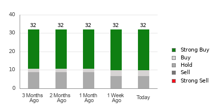 Chipotle currently has an average brokerage recommendation (ABR) of 1.52, on a scale of 1 to 5 (Strong Buy to Strong Sell), calculated based on the actual recommendations (Buy, Hold, Sell, etc.) made by 32 brokerage firms. An ABR of 1.52 approximates between Strong Buy and Buy.