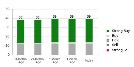 Zscaler currently has an average brokerage recommendation (ABR) of 1.67, on a scale of 1 to 5 (Strong Buy to Strong Sell), calculated based on the actual recommendations (Buy, Hold, Sell, etc.) made by 39 brokerage firms. An ABR of 1.67 approximates between Strong Buy and Buy.