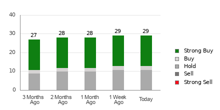 Lam Research currently has an average brokerage recommendation (ABR) of 1.83, on a scale of 1 to 5 (Strong Buy to Strong Sell), calculated based on the actual recommendations (Buy, Hold, Sell, etc.) made by 29 brokerage firms. An ABR of 1.83 approximates between Strong Buy and Buy.