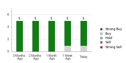 Modine currently has an average brokerage recommendation (ABR) of 1.20, on a scale of 1 to 5 (Strong Buy to Strong Sell), calculated based on the actual recommendations (Buy, Hold, Sell, etc.) made by five brokerage firms. An ABR of 1.20 approximates between Strong Buy and Buy.