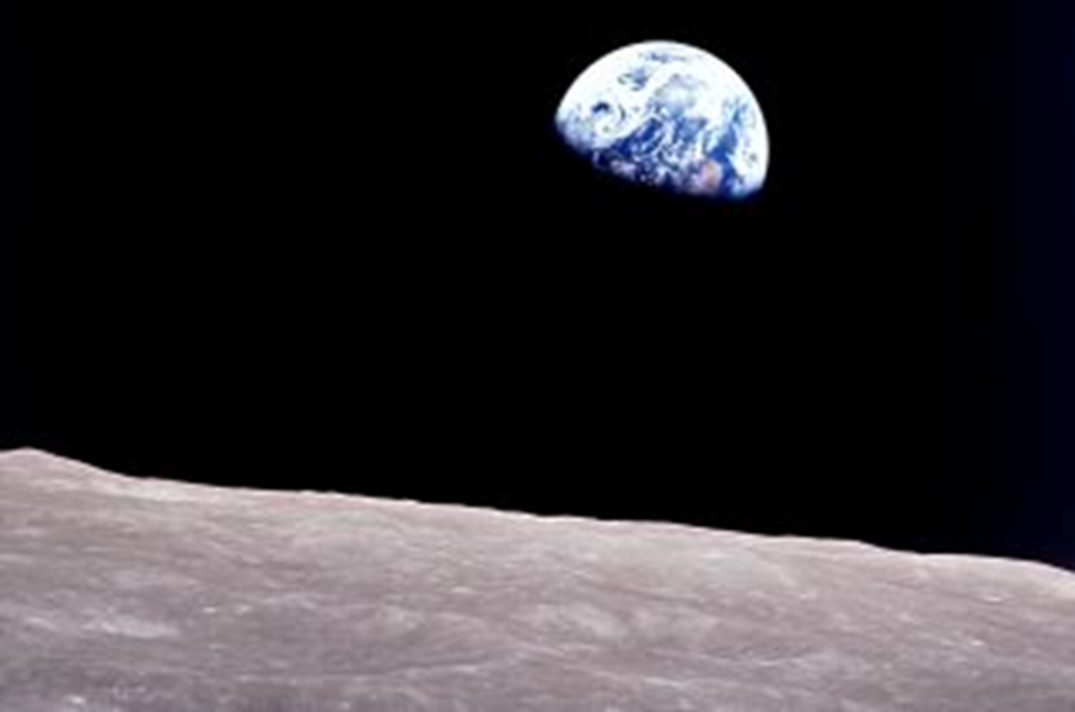 “Earthrise,” as first seen by the Apollo 8 crew in December 1968.