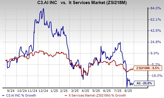 Shares of C3.ai have lost 25.8% in the past year compared with the industry’s decline of 9.5%.