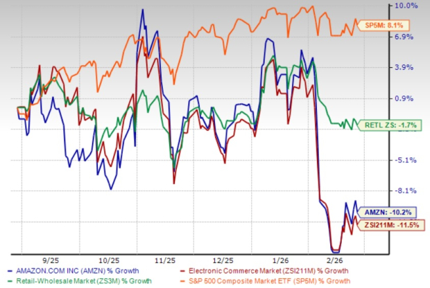 Amazon shares have lost 10.2% in the past six-month period compared with the Zacks Internet – Commerce industry and the Zacks Retail-Wholesale sector’s decline of 11.5% and 1.7%, respectively.