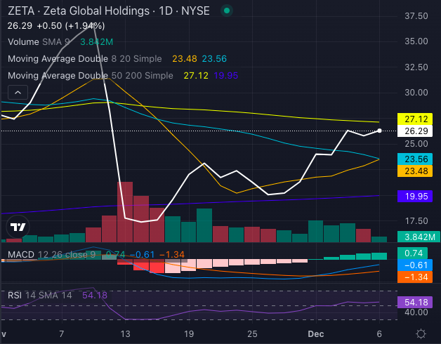 ZETA’s share price of $26.29 sits comfortably above key moving averages: