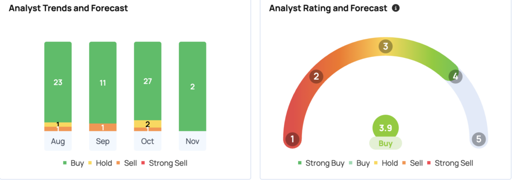 Based on evaluations from 41 analysts, Meta’s consensus price target stands at $639.05, with the highest projection of $811 issued by Rosenblatt on Oct. 31, 2024. Recent ratings from Raymond James, Wells Fargo, and Citigroup average at $673.67, implying a potential 9.72% upside.
